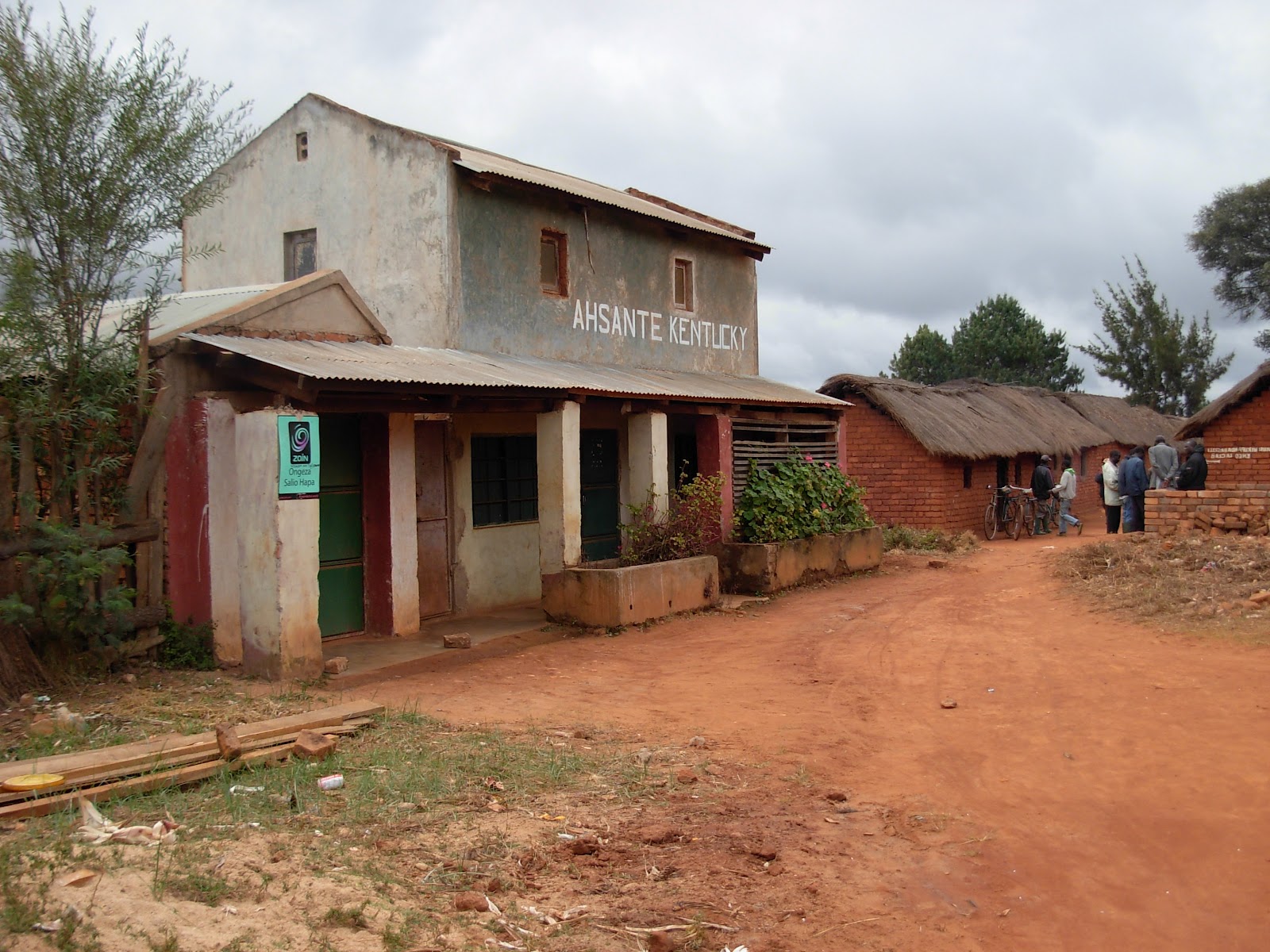 Around noon, Edward wanted us to go hodi-hodi-ing. Hodi hodi means "may I enter" in Swahili, but we crazy wazungu (white people) took to using it as a "Swahinglish" verb in regular conversation to mean "go visiting." We called upon Edward's wife and saw the Mgenis' beautiful home once again. (Late Wednesday afternoon of the week prior, Kendra and I had gone with Edward to see a traditional dance performance, but we had the wrong date or time and didn't get to see it. On our way back, Edward took us by his house because he wanted to get a sweater.) The Mgenis have a very nice home by African standards, definitely one of the nicest in the village. It was made of cement walls and a metal roof, was fairly large, and had land around for chickens and cows and banana trees and corn. It even had a satellite dish and a TV as just a few houses have.